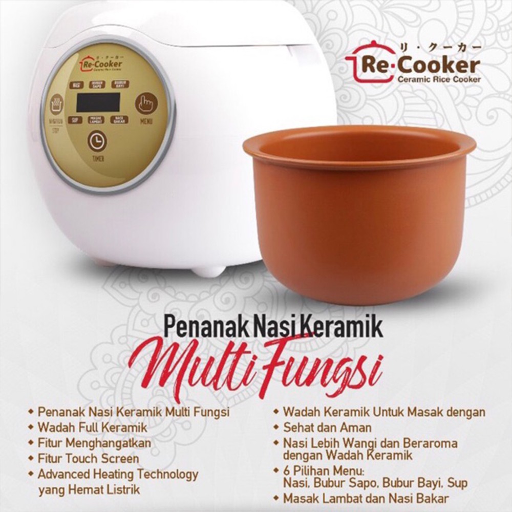 ReCooker RK60 Rice Cooker Full Keramik Healthy Rice Cooker Ceramic | Shopee Indonesia