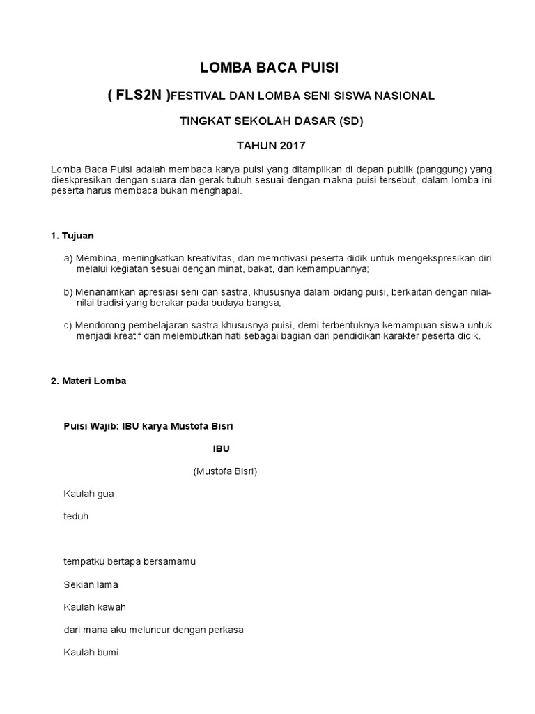 Juara 1 Baca Puisi IBU Karya Mustofa Bisri FLS2N 2017 Kecamatan …