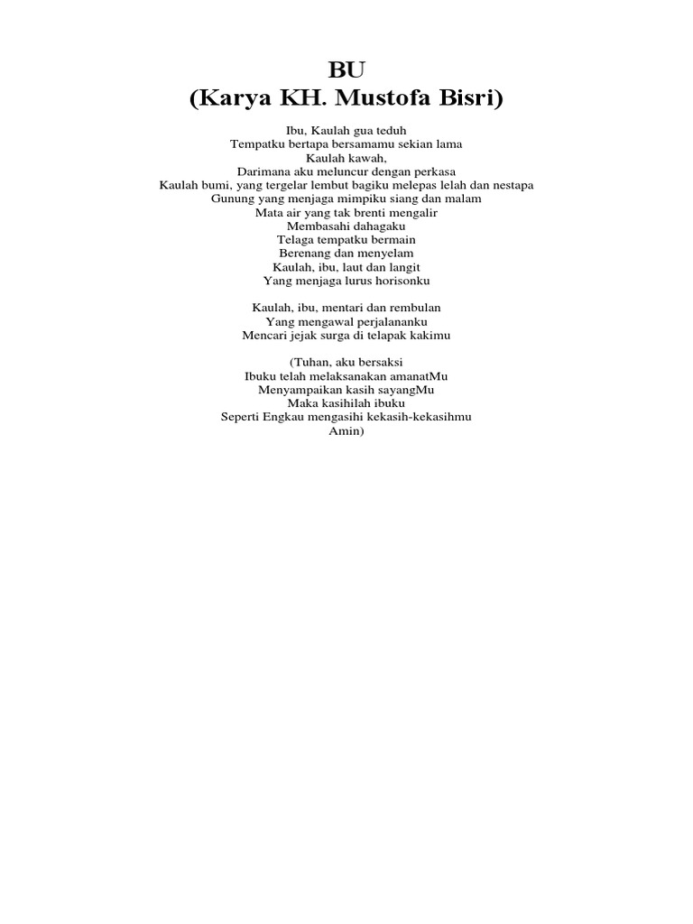 Puisi Ibu Karya Kh Mustofa Bisri - KT Puisi