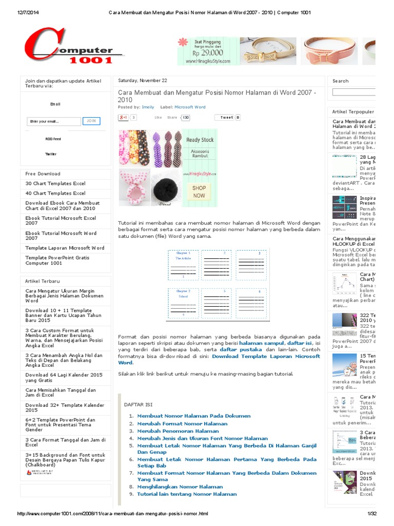 Cara Membuat dan Mengatur Posisi Nomor Halaman di Word – Computer 1001
