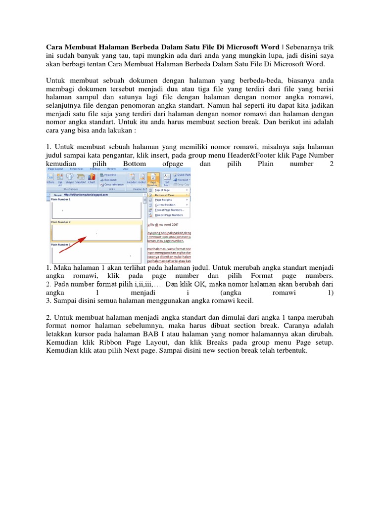 DOC) CARA MEMBUAT HALAMAN BERBEDA DALAM SATU FILE DI MS WORD 2007 …