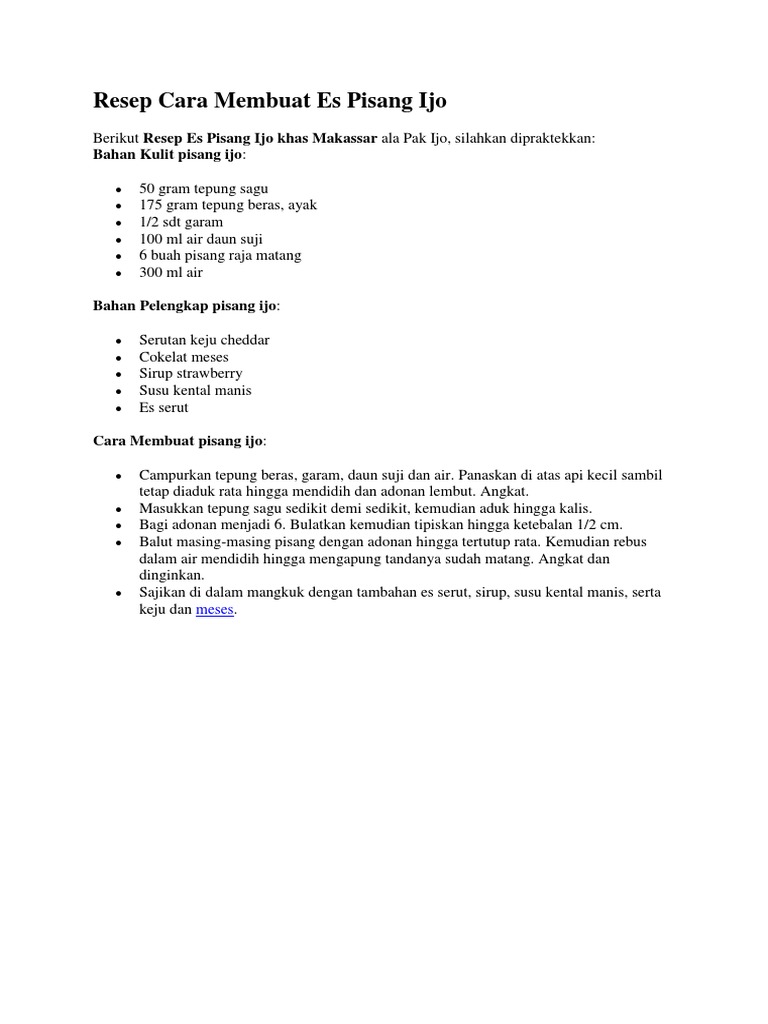 Resep Es Pisang Ijo Khas Makassar Dijamin Enak - BebasBayar