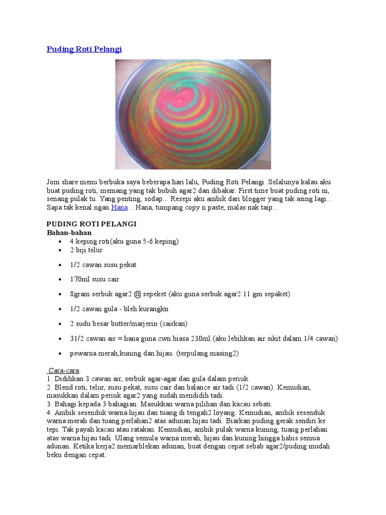 RESEPI PUDING ROTI PELANGI] 10g agar2… - Ayam Bismi Segar Halal …