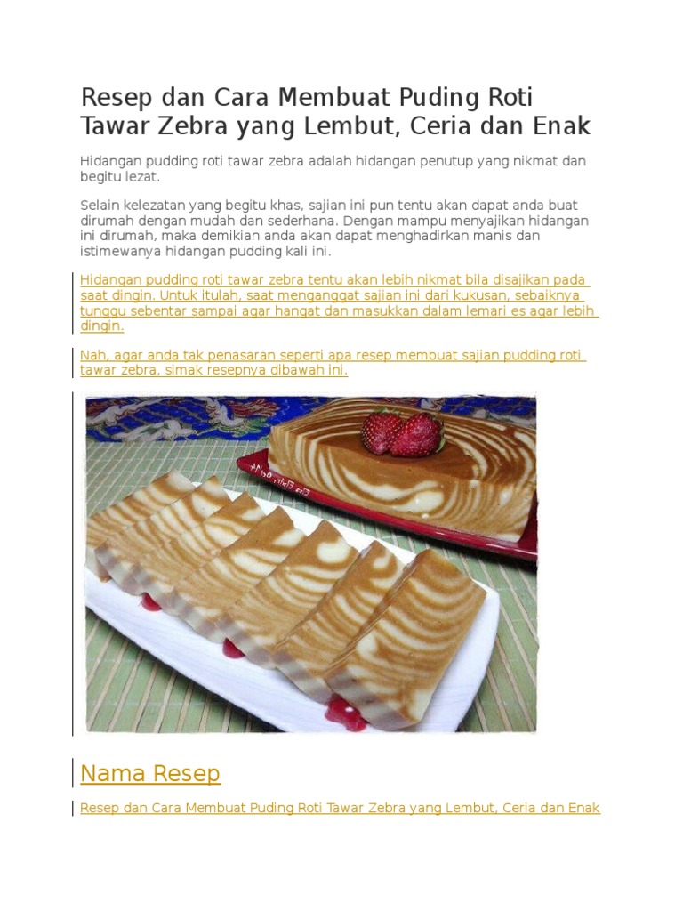 Resep Dan Cara Membuat Puding Roti Tawar Zebra Yang Lembut