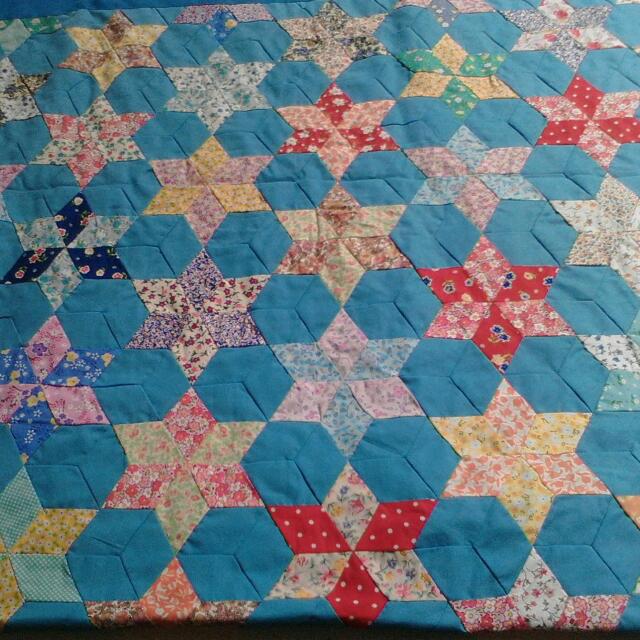 Selimut ke-3. Bahan atas: kain perca. Bahan bawah: sprei katun …