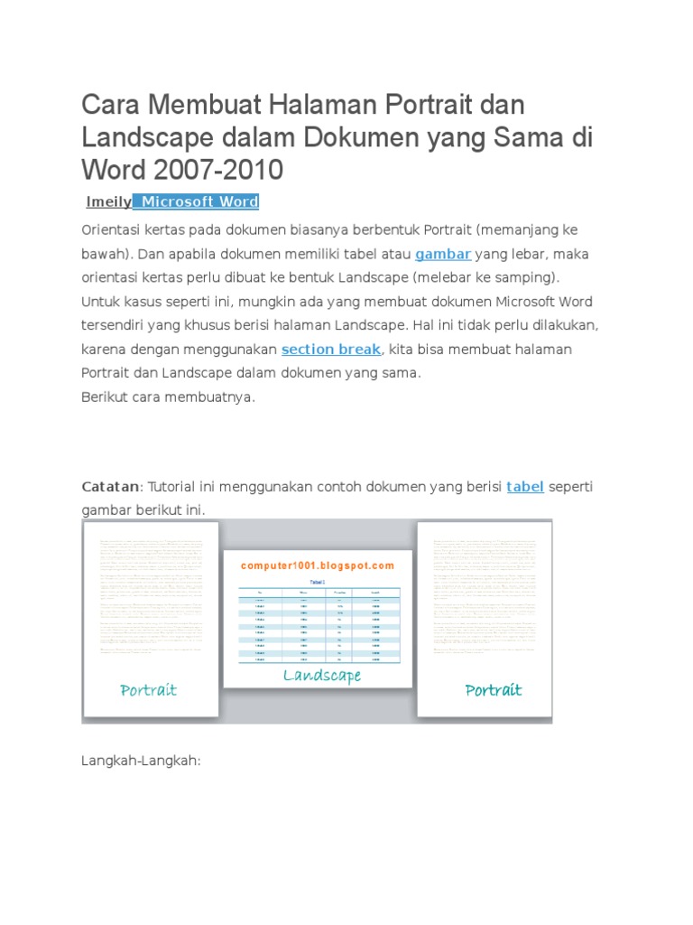 Cara Membuat Halaman Portrait Dan Landscape Dalam Dokumen Yang …