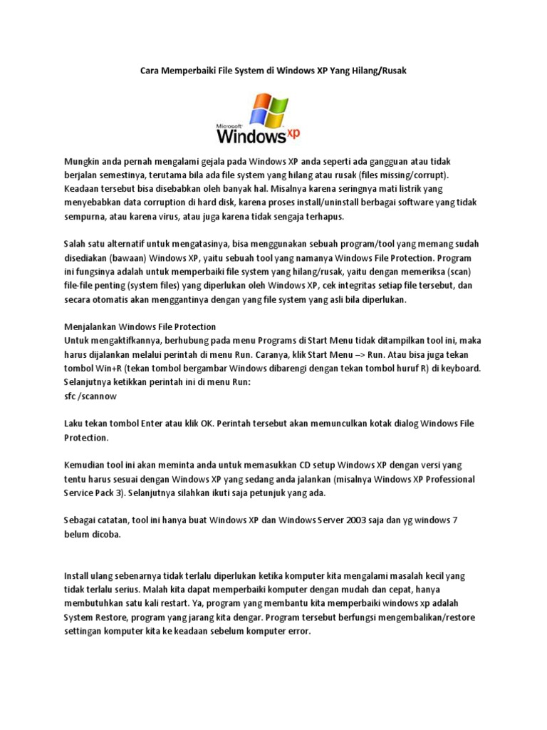 Cara Memperbaiki File System Di Windows XP Yang Hilang