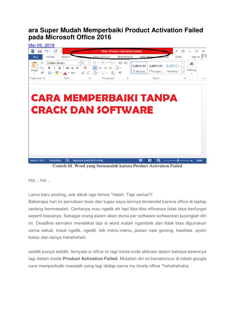 Cara Menghilangkan Product Activation Failed Microsoft Word 2016 …