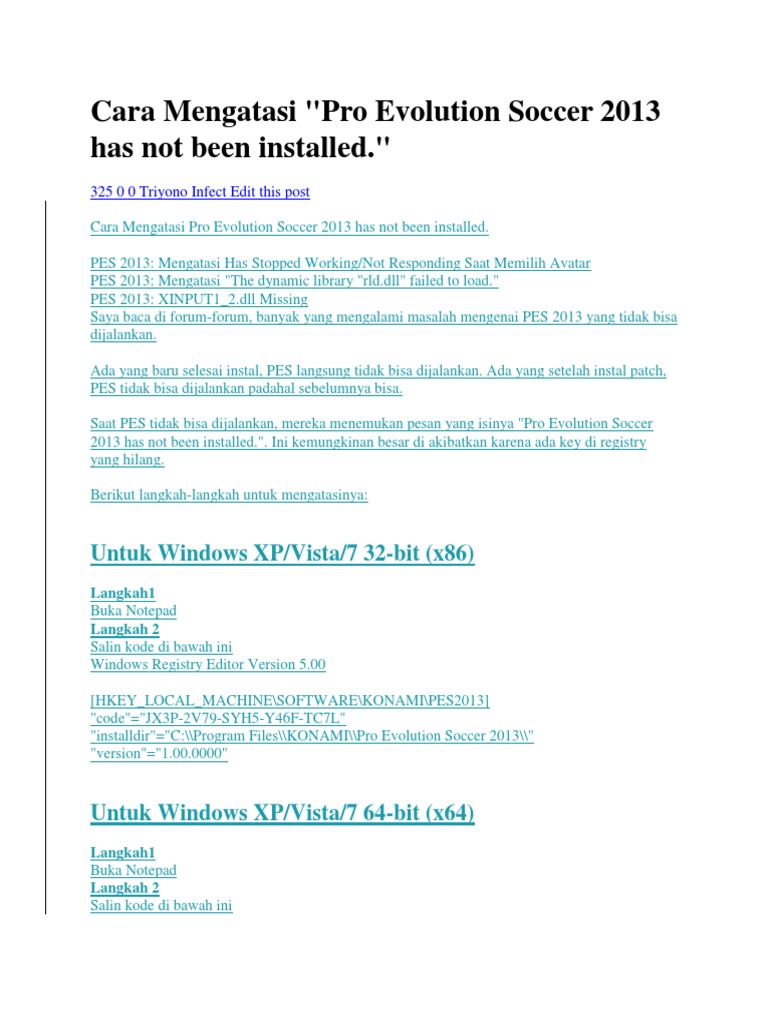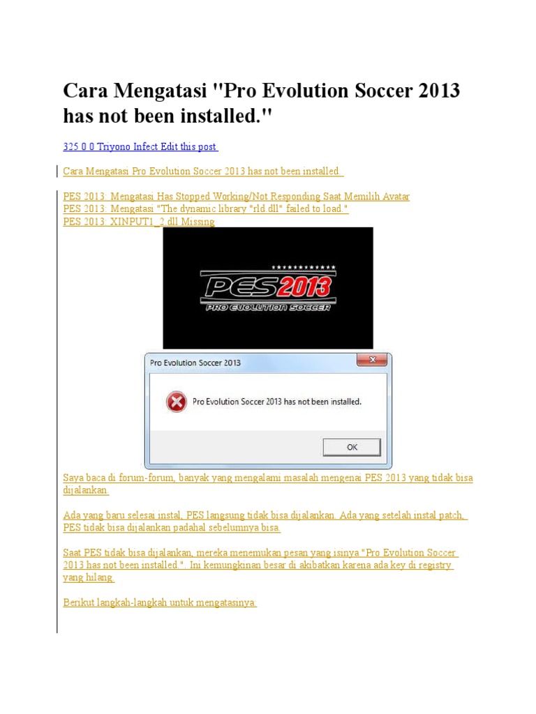 Cara Mengatasi The Game Is Not Properly Installed Di Pes 6