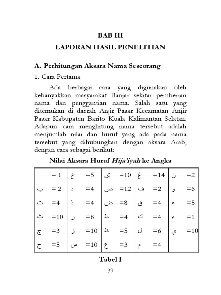 PERHITUNGAN NAMA CALON PASANGAN PENGANTIN MENURUT KAIDAH ABJADIYYAH HISAB JUMAL KABIR (Studi Pandangan KH. Irfan Zidny Wahab) SK