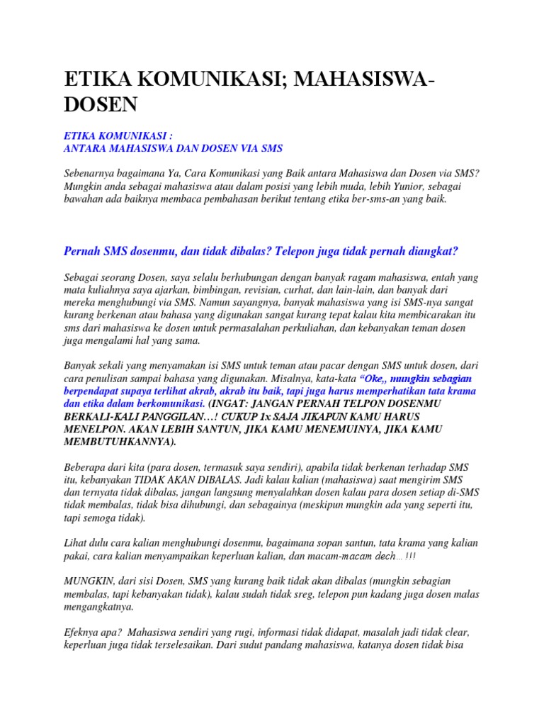 Etika Mahasiswa Menghubungi Dosen Via SMS/WA - Program Studi …