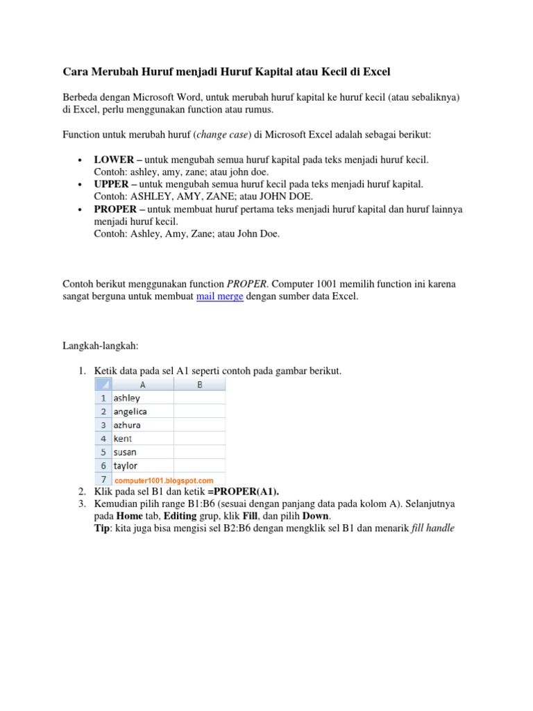 Cara Merubah Huruf Menjadi Huruf Kapital Atau Kecil Di Excel _ Computer 1001