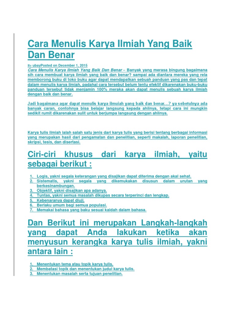 Cara Menulis Karya Ilmiah Yang Baik Dan Benar