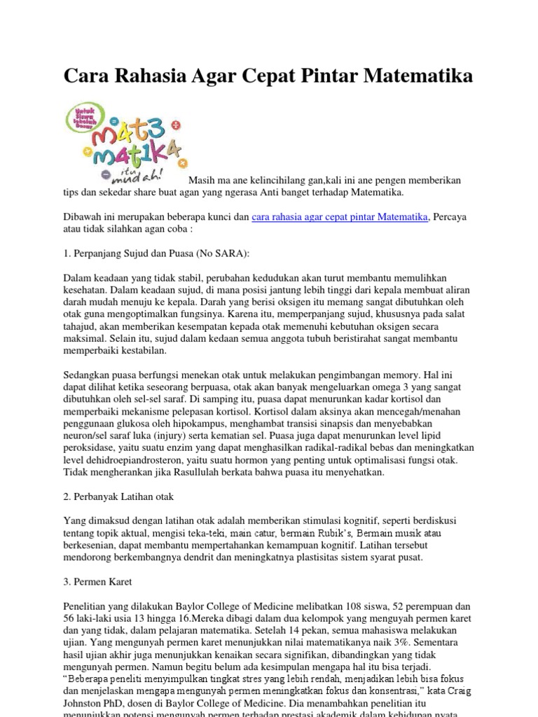 Cara Rahasia Agar Cepat Pintar Matematika | resaliapangesti9120