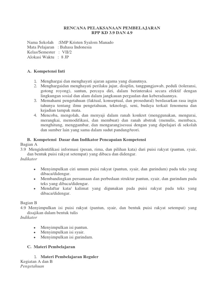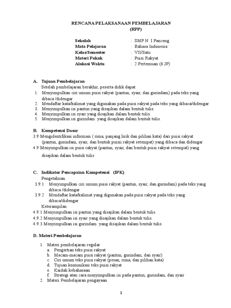 DOC) RPP Bahasa Indonesia Kelas 7 Semester 2 berdasarkan Silabus Bahasa Indonesia SMP tahun 201720200216 79595 6katl0 | jawaria zahra - Academia.edu