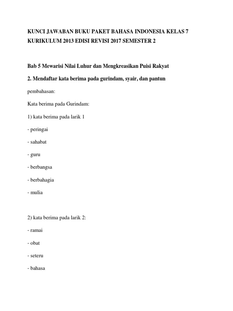 Kunci Jawaban Buku Paket Bahasa Indonesia Kelas 7 Kurikulum 2013 Edisi Revisi 2017 Semester 2