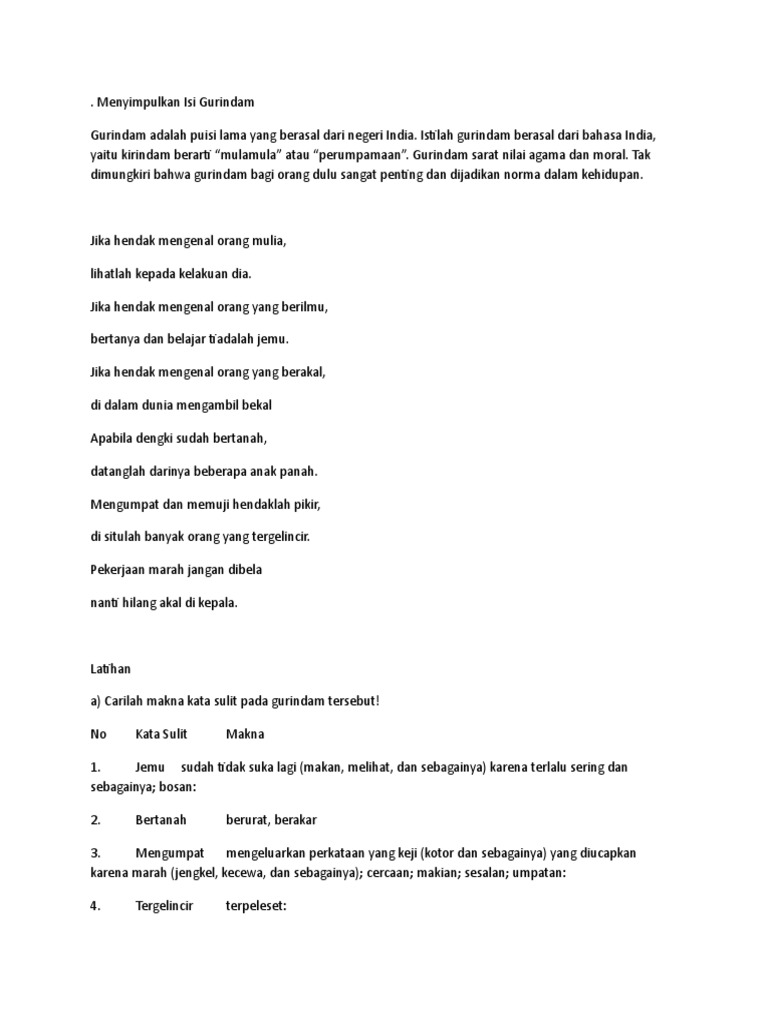 √ Latihan Carilah Makna Kata Sulit Pada Gurindam Tersebut - Operator Sekolah