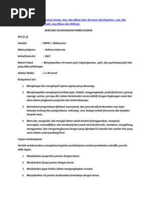 Rpp Puisi Rakyat ( Pantun )