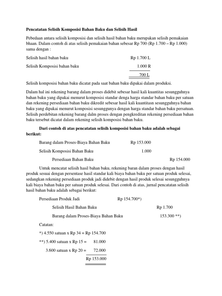 Pencatatan Selisih Komposisi Bahan Baku dan Selisih Hasil