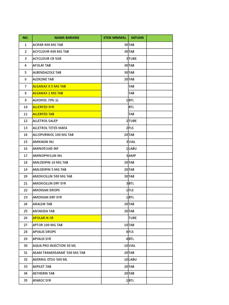 AQ_MINIMAL STOK APOTEK.xlsx | Mucus | Drugs