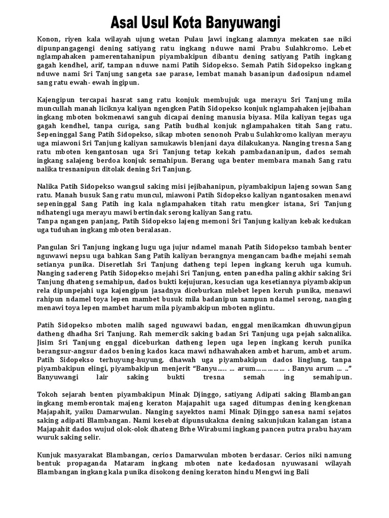 Cerita Banyuwangi Dalam Bahasa Jawa