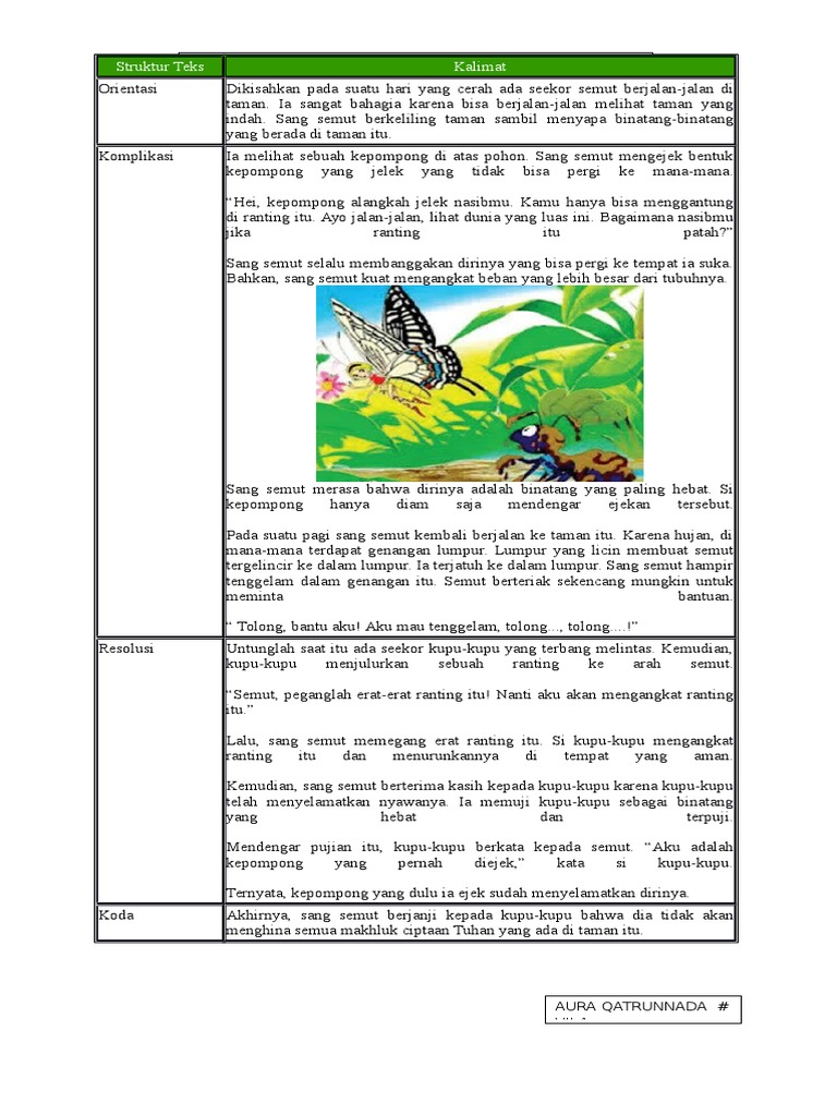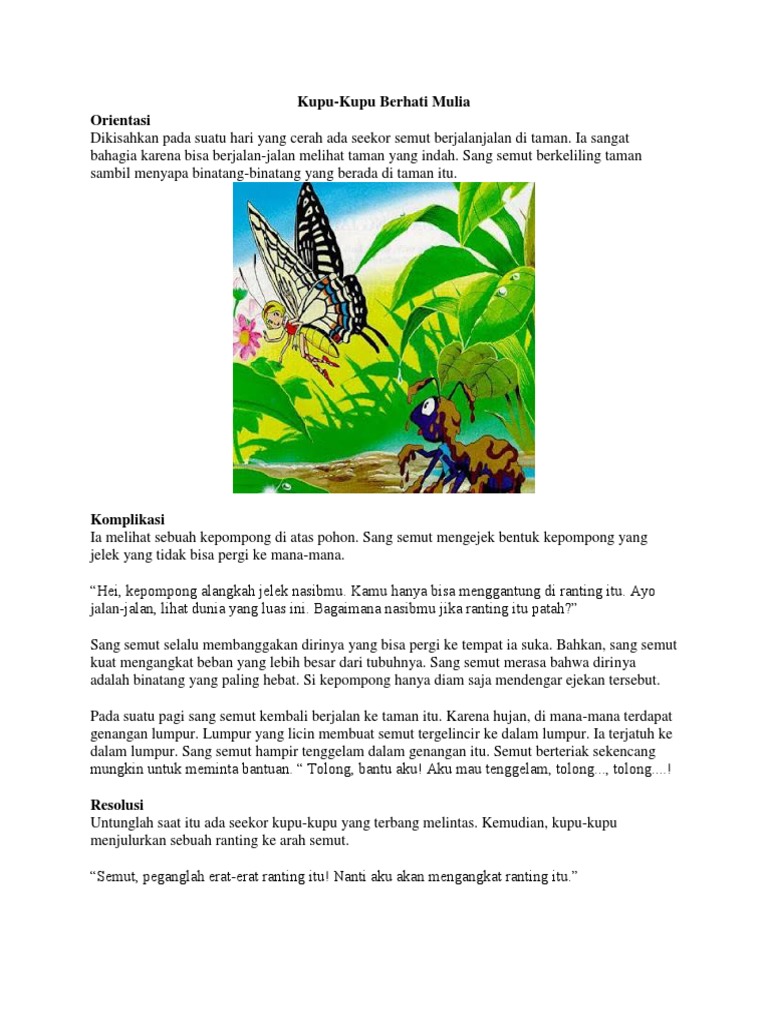 Struktur Teks Cerita Fabel Kupu Kupu Berhati Mulia - Berbagi Struktur