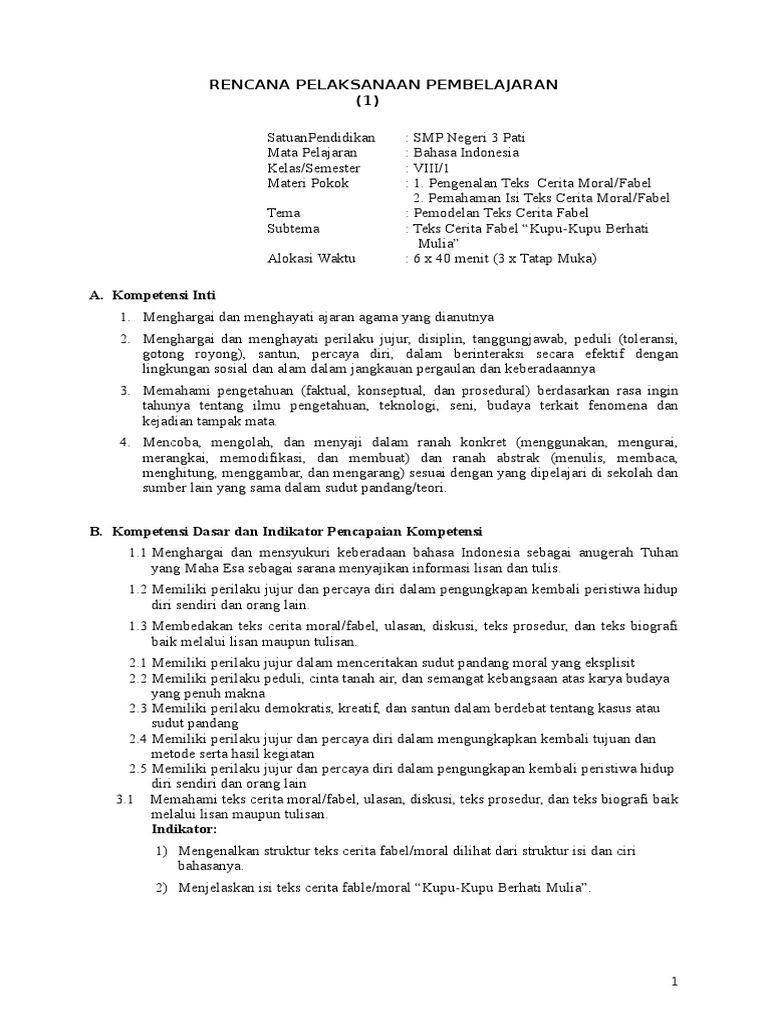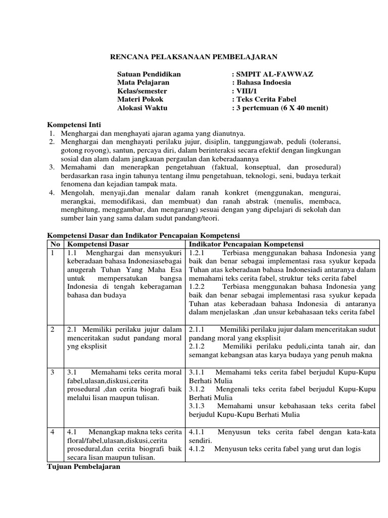 RPP SMP Bahasa Indonesia Kelas VIII