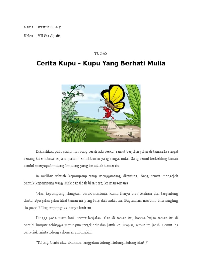 Cerita Kupu – Kupu Yang Berhati Mulia: Nama: Izzatun K. Aly Kelas …