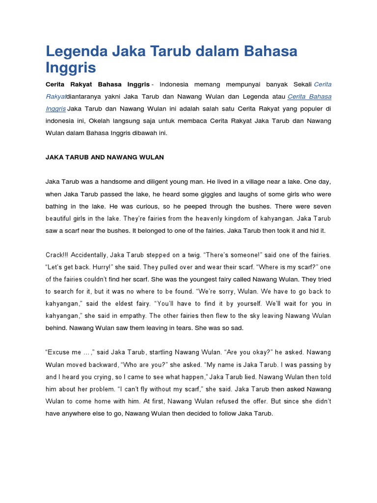 Cerita Jaka Tarub Dalam Bahasa Inggris