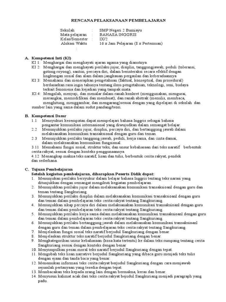 RPP Bahasa iNggris Kelas IX Kurikulum 2013 Part 4