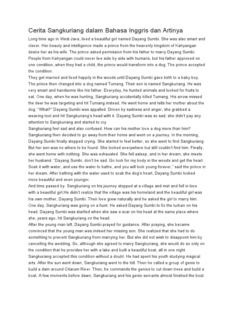 Teks Cerita Sangkuriang Dalam Bahasa Inggris Dan Artinya - [PDF …