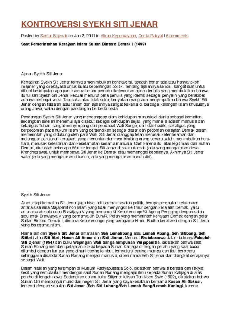 SEJARAH SYEH SITI JENAR. Nama asli Syekh Siti Jenar adalah… | by …