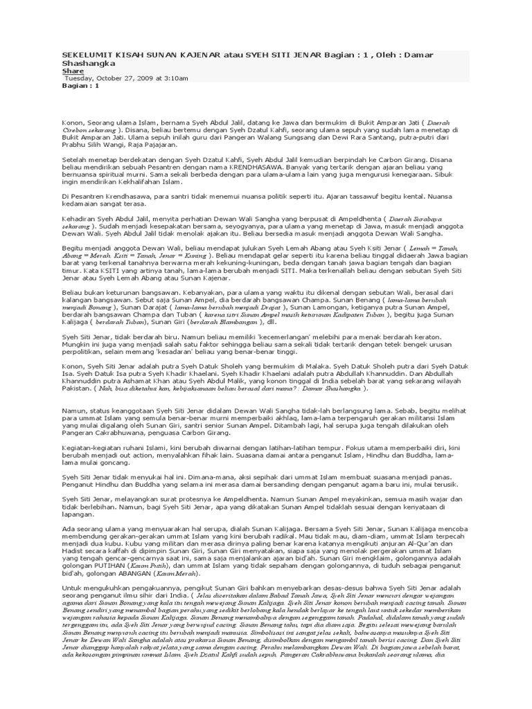 SEKELUMIT KISAH SUNAN KAJENAR atau SYEH SITI JENAR (Bagian : 1 …