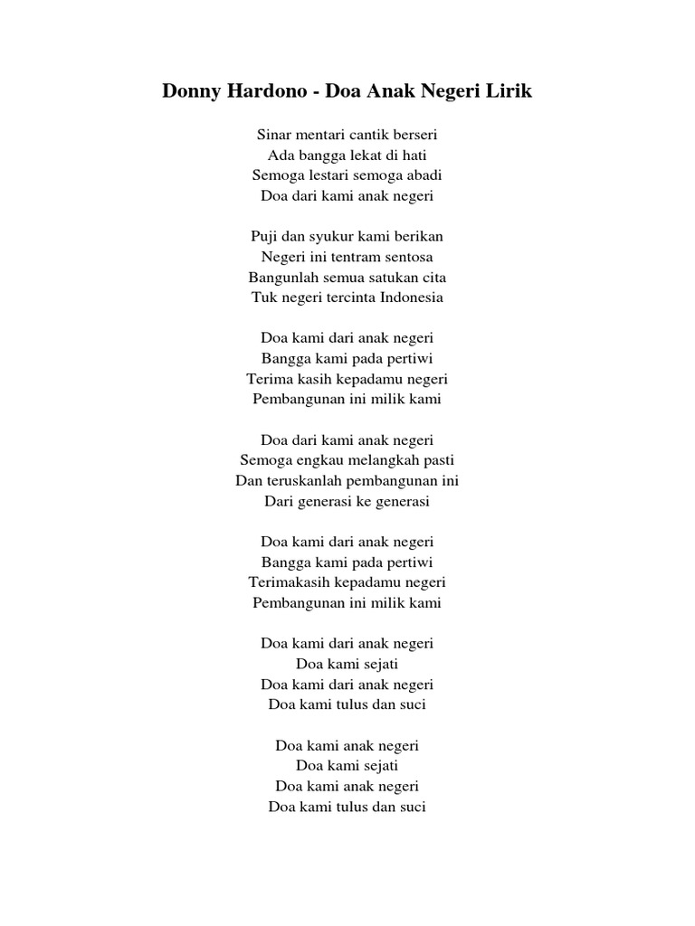 Lirik Lagu Doa Anak Negeri
