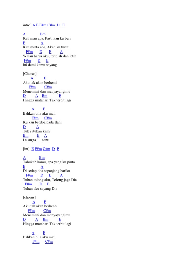 Chord Mau Dibawa Kemana semuanya telah kuberi dengan kesungguhan …