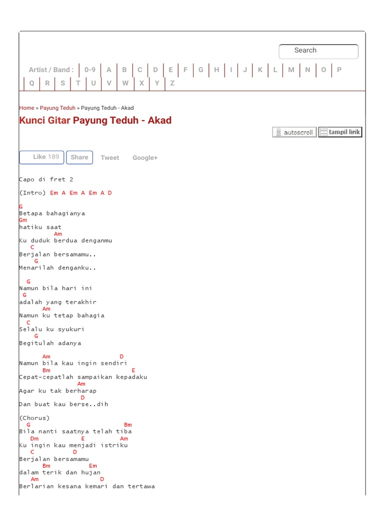 Kunci Gitar Payung Teduh - Akad Chord Dasar Mudah @ Chordindonesia.com