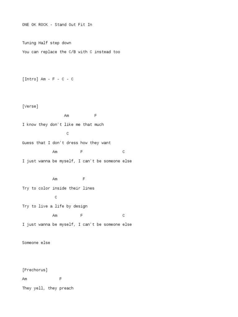 one ok rock stand out fit in chord | Songs | Musical Compositions