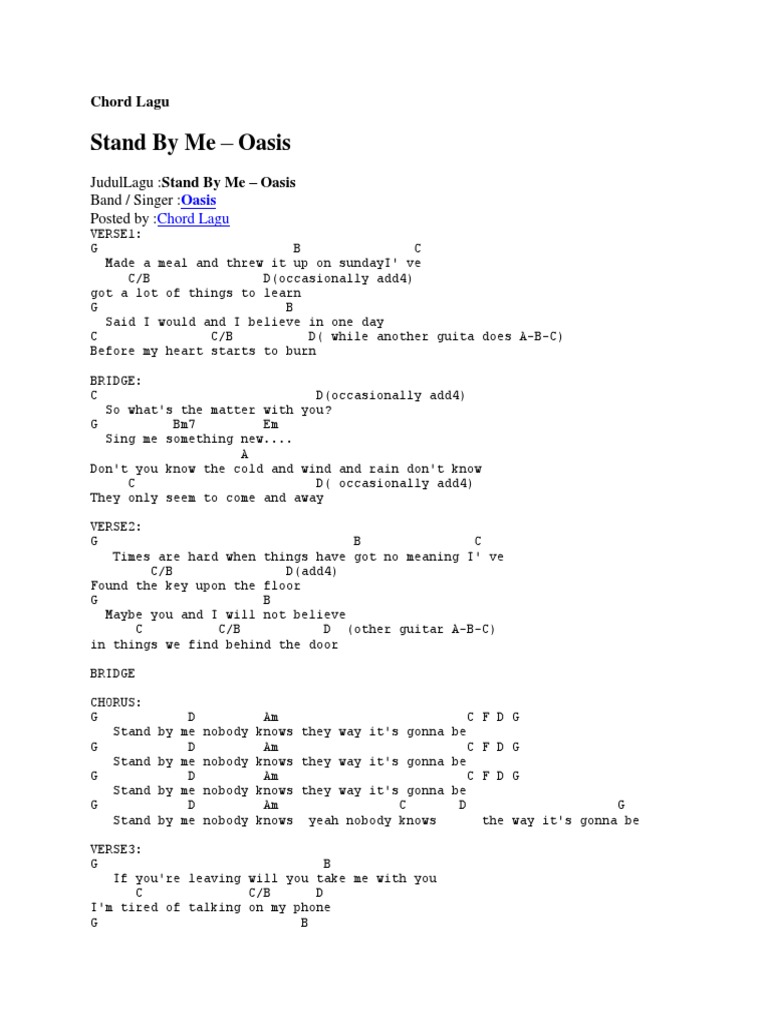 Chord lagu stand by me oasis