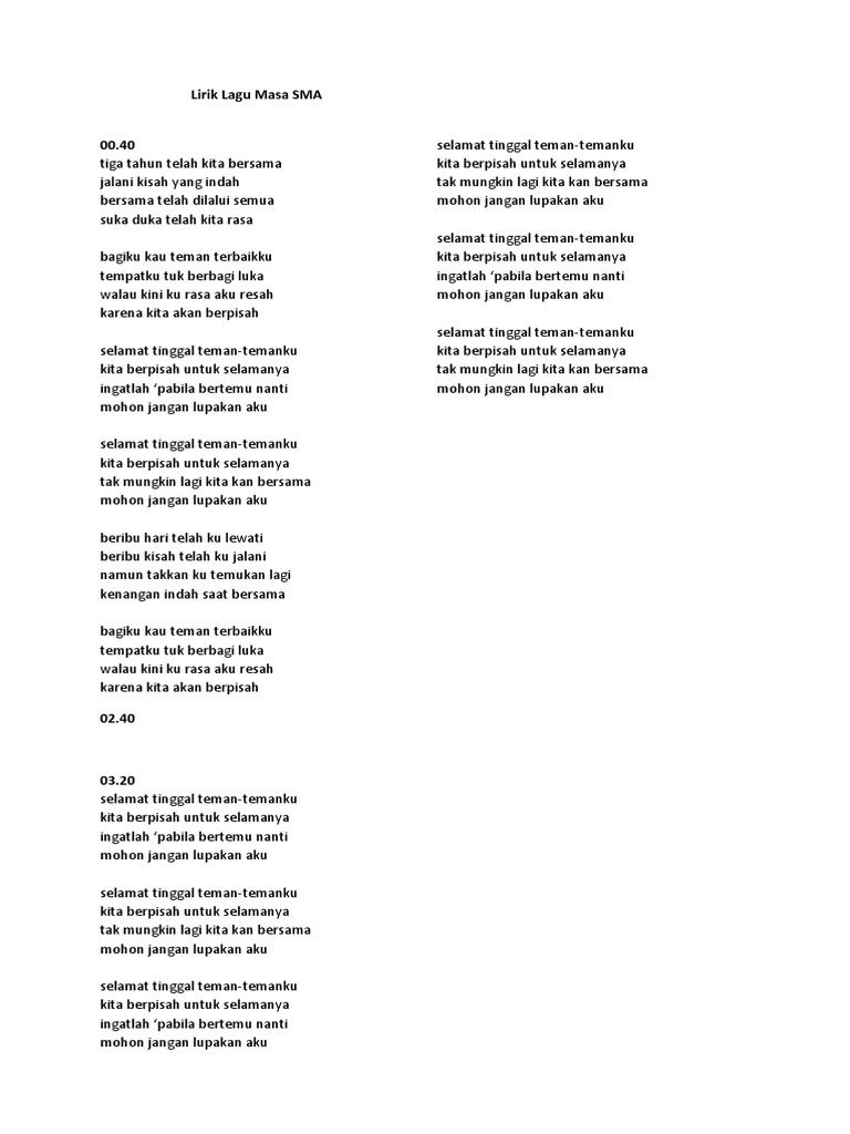Lirik Lagu Masa Sma