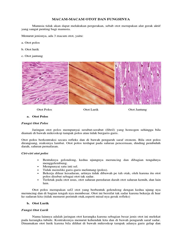 Pengertian Otot, Macam, Jenis, Ciri-ciri, Fungsi Dan Contoh Serta …