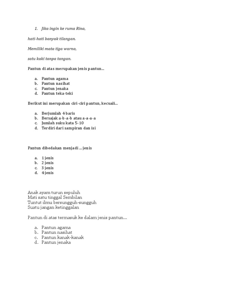 1. Jelaskan ciri ciri pantun di atas!2. Identifikasilah sampiran dan isi pantun di atas?3. Apa - Brainly.co.id