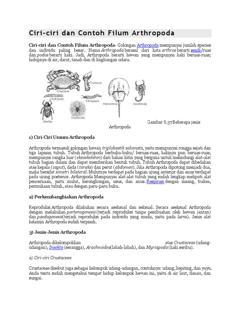 Ciri-Ciri Dan Contoh Filum Arthropoda - [DOCX Document]
