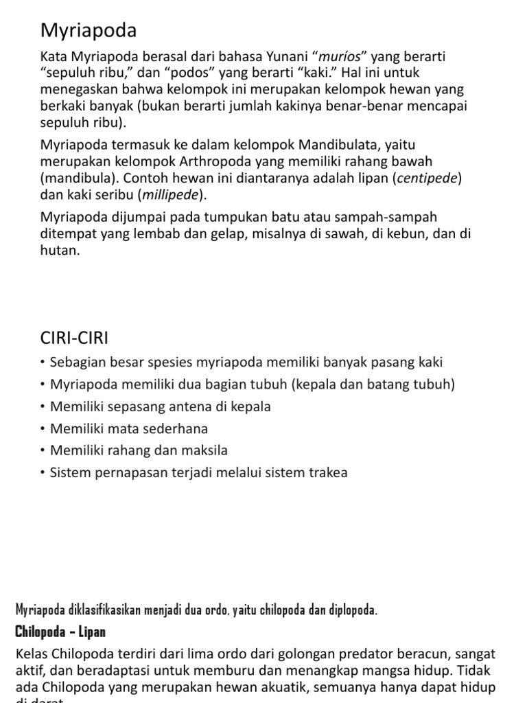 Sebutkan ciri dari Myriapoda! - Brainly.co.id