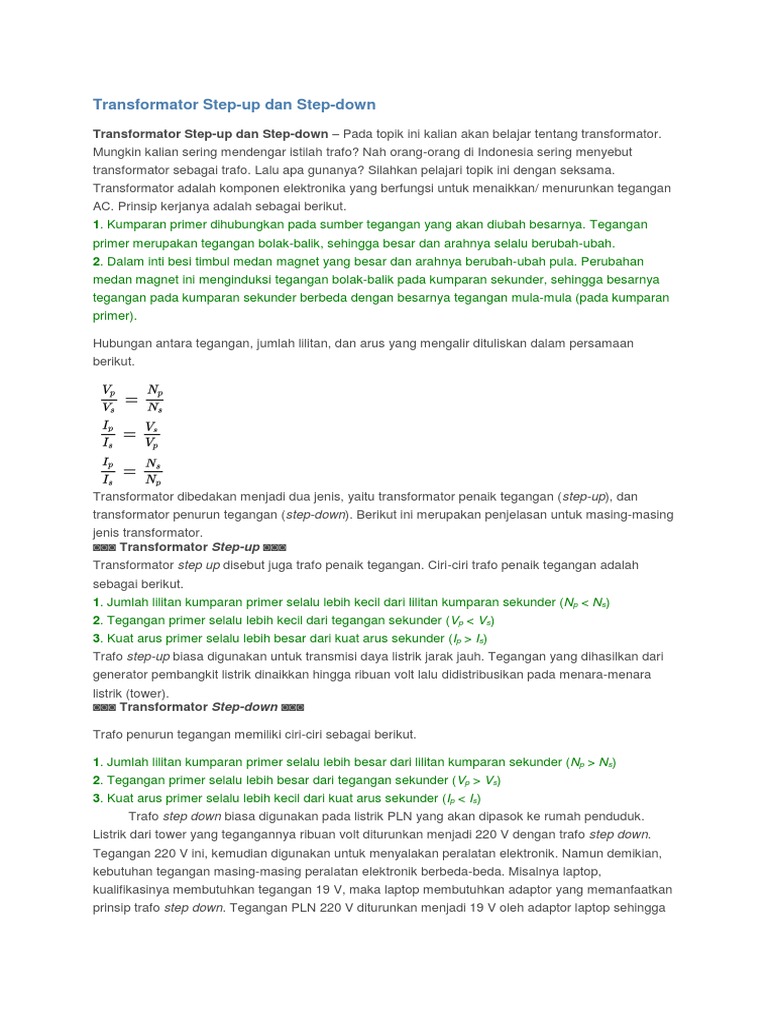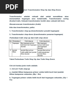 Jelaskan Perbedaan Antara Trafo Step Up Dengan Trafo Step Down …