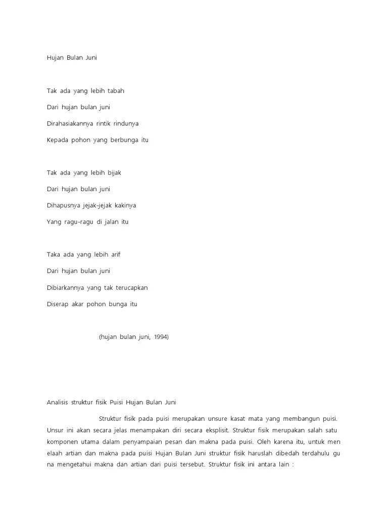 Struktur Fisik Puisi “Aku” dan “Hujan Bulan Juni” Halaman all …