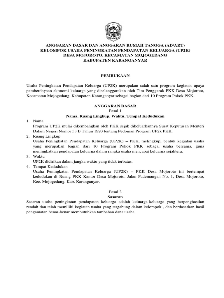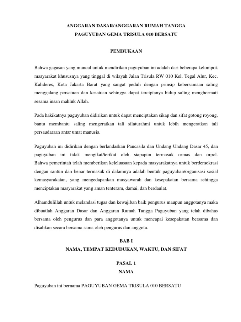 DOC) Contoh Anggaran Dasar dan Aturan Rumah Tangga Koperasi | Ardi …