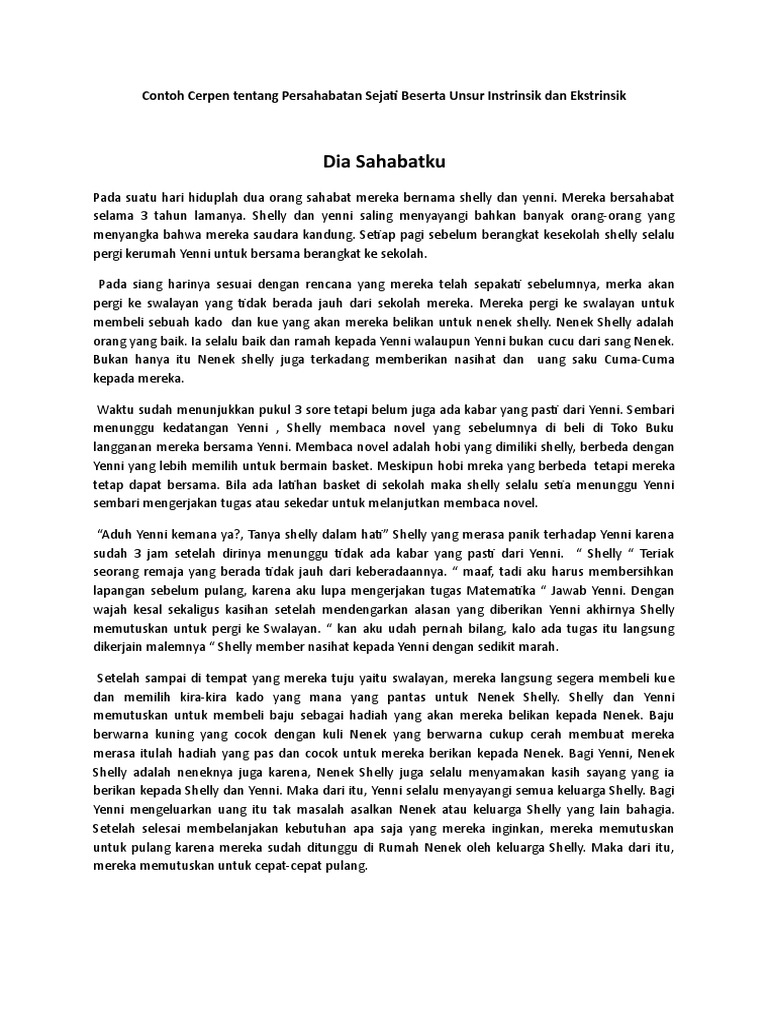Contoh Cerpen Persahabatan Beserta Unsur Intrinsik Dan Ekstrinsik …