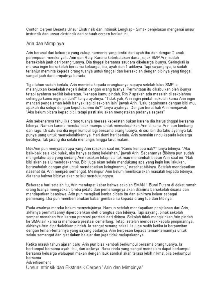 DOC) Contoh Cerpen Beserta Unsur Intrinsik | Sri Sunar - Academia.edu