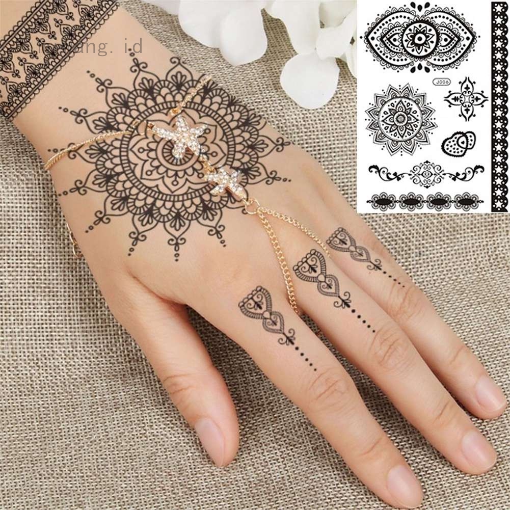 1 Lembar Stiker Tato Henna Temporary Desain Bunga Warna Hitam …