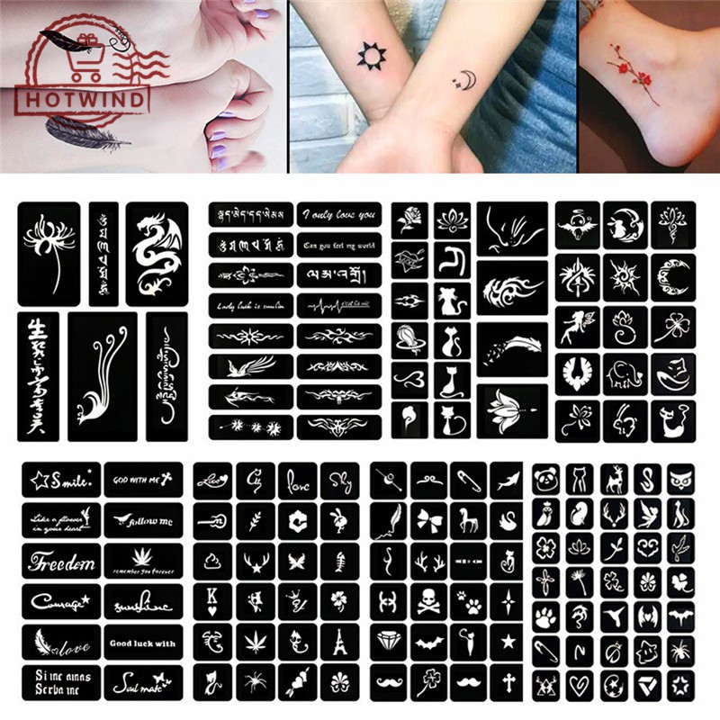 HW 108pcs Cartoon Henna Pattern Tattoo Stencil Glitter Tattoo …
